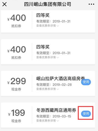 3、电子券领取:请关注岷山酒店集团微信公众号:minshanguest,依次点击注册/登录---会员卡绑定---输入参与抽奖的手机号获取验证码,登录后点击优惠券查询,电子券有效期截止为2019年12月31日;